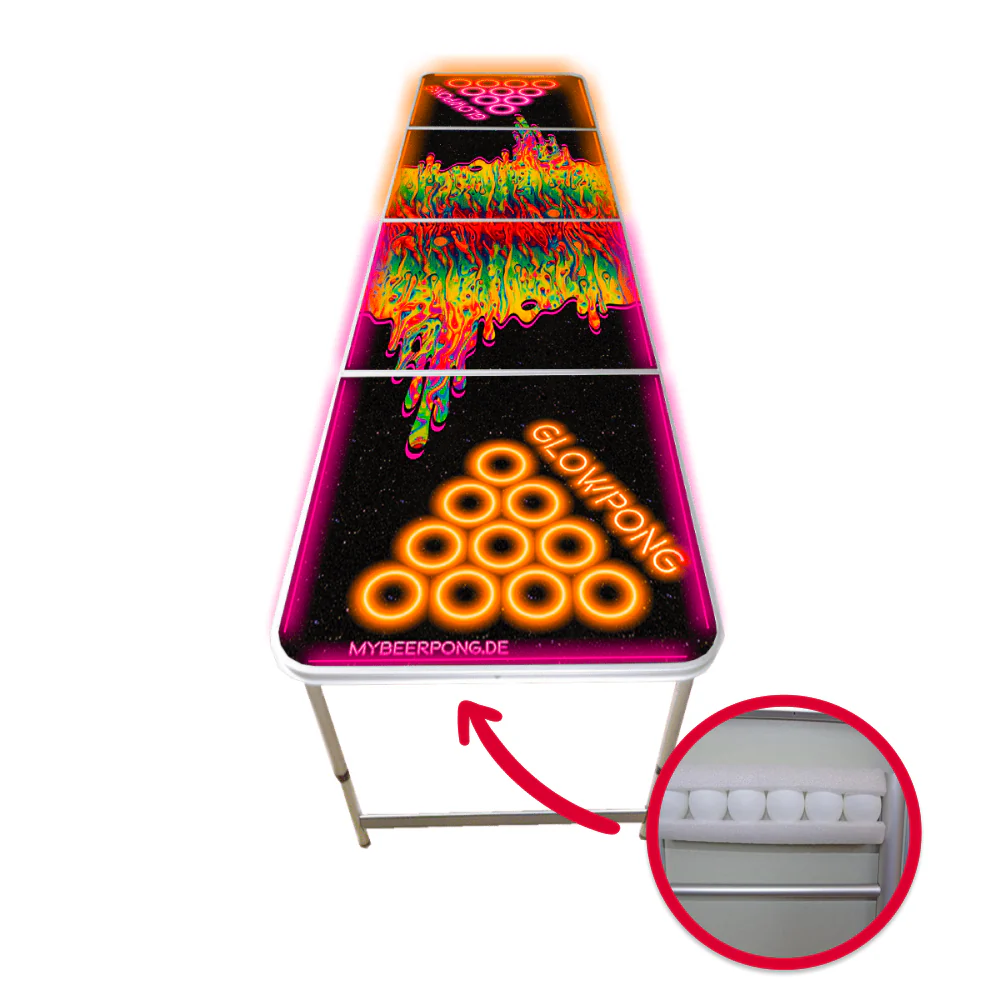 Mit einer Prise Sixties, einer Portion Magma und viel Kreativität zaubert das Designteam von MyBeerPong einen aufregenden LED Beer-Pong Tisch. Knallbunte Neon-Farben in Orange, Pink und Grün verschmelzen wie fließende Lava auf dem Spielfeld.